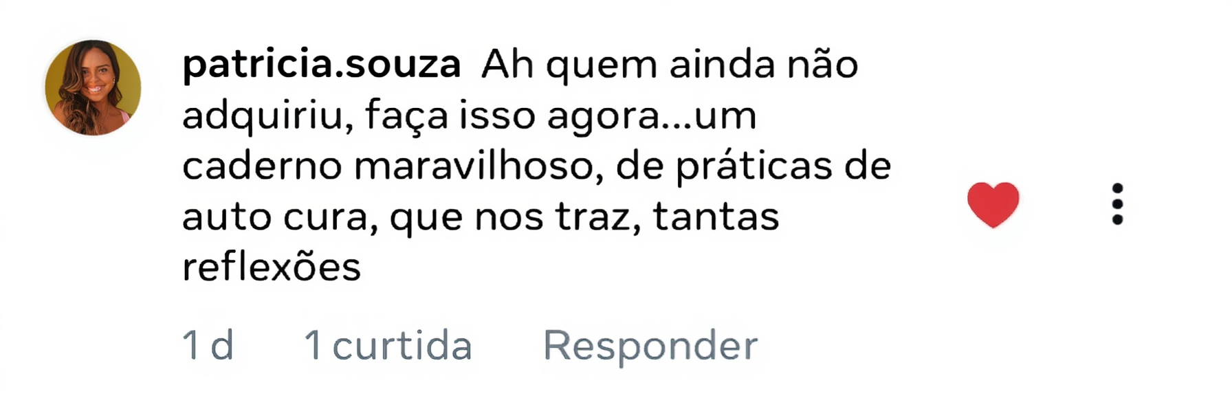 Pela primeira vez na vida, escrevi uma carta pra mim mesma com carinho. Me emocionei demais. Esse caderno é mais do que exercícios, é um abraço.
